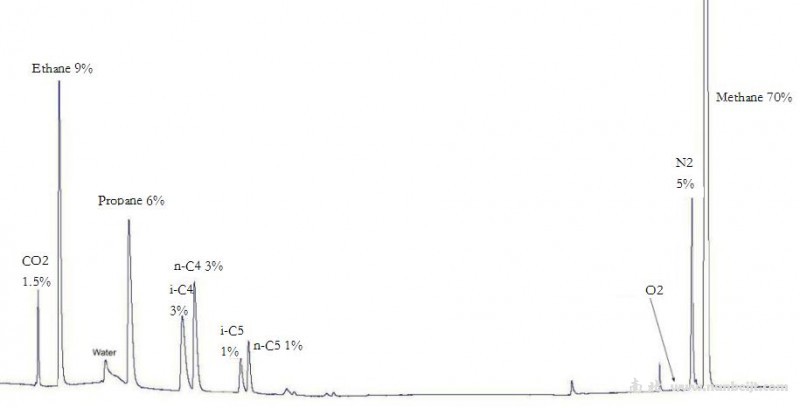 熱導檢測器(TCD)檢測空氣組分,二氧化碳,C1-C5 的烴類。
