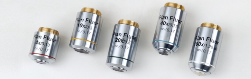 無限遠平場消色差物鏡(2X、4X、10X、20X、40X、60X、100X) |
