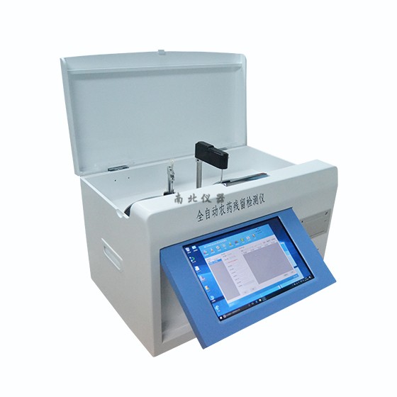 全自動(dòng)農(nóng)藥殘留速測(cè)儀用于水果、蔬菜等農(nóng)產(chǎn)品中有機(jī)磷和氨基甲酸脂類(lèi)農(nóng)藥殘留的檢測(cè)。檢測(cè)方法依據(jù)國(guó)標(biāo)《GB/T5009.199-2003》中的酶抑制率法,是國(guó)內(nèi)靈敏、和準(zhǔn)確的農(nóng)藥殘留快速檢測(cè)方法。本儀器實(shí)現(xiàn)了農(nóng)藥殘留快速檢測(cè)的全自動(dòng)化,使農(nóng)藥殘留的檢測(cè)只需要放入樣品既可實(shí)現(xiàn)精準(zhǔn)的快速檢測(cè)。檢測(cè)過(guò)程中儀器內(nèi)溫度恒定,試劑定量,檢測(cè)過(guò)程中自動(dòng)進(jìn)樣,使用完畢后儀器自動(dòng)清洗,克服了傳統(tǒng)檢測(cè)中人工操作帶來(lái)的檢測(cè)誤差。
