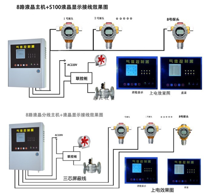 ◆ 系統(tǒng)與外接(氣體)探測器連接線要求: