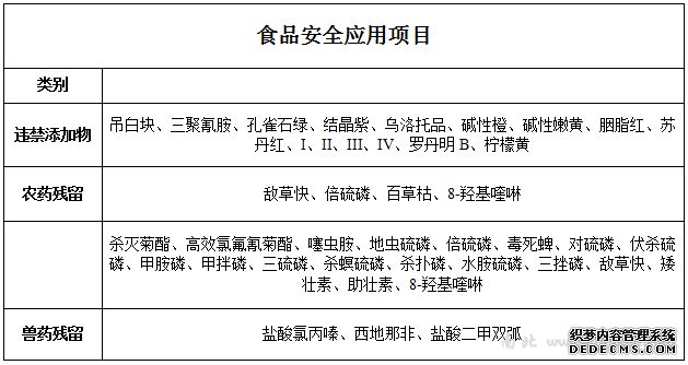 拉曼表面增強試劑,由檢驗檢疫科學(xué)院與中檢國研(北京)有限公司聯(lián)合研制,基于膠體激光拉曼表面增強技術(shù),利用納米技術(shù)研制的試劑(盒),可廣泛用于食品中違禁添加物、農(nóng)獸藥殘留等現(xiàn)場、快速檢測,使傳統(tǒng)拉曼檢測靈敏度提高104-6以上,提高檢測效率。