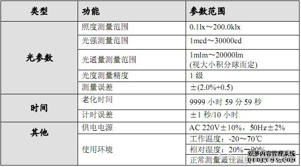 主要技術特性及功能特點