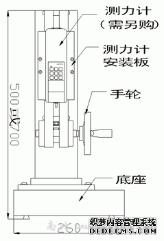 工作臺上合適的位置。旋轉測試架側面的手輪,測力計就能上下平穩移動,完成測試工作。
