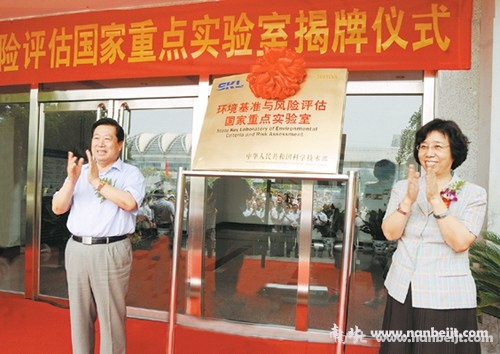 6月21日,環境基準與風險評估重點實驗室揭牌儀式在環境科學研究院舉行,環境保護部部長周生賢、科技部副部長陳小婭共同為實驗室揭牌。