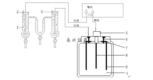 1、Hb遷移管 2、陽極 3、陰極 4、庫侖計 5、陰極插座