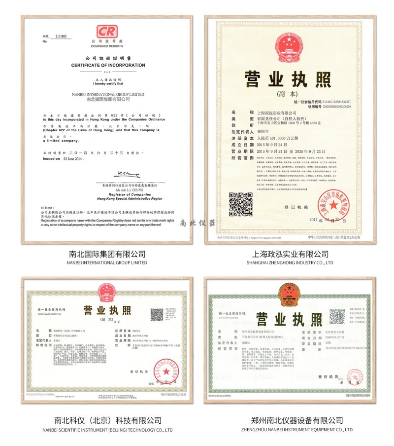 南北NANBEI集團旗下:有限公司、南北科儀(北京)科技有限公司、鄭州南北儀器設備有限公司、上海政泓實業有限公司各公司營業執照及商業登記證公示