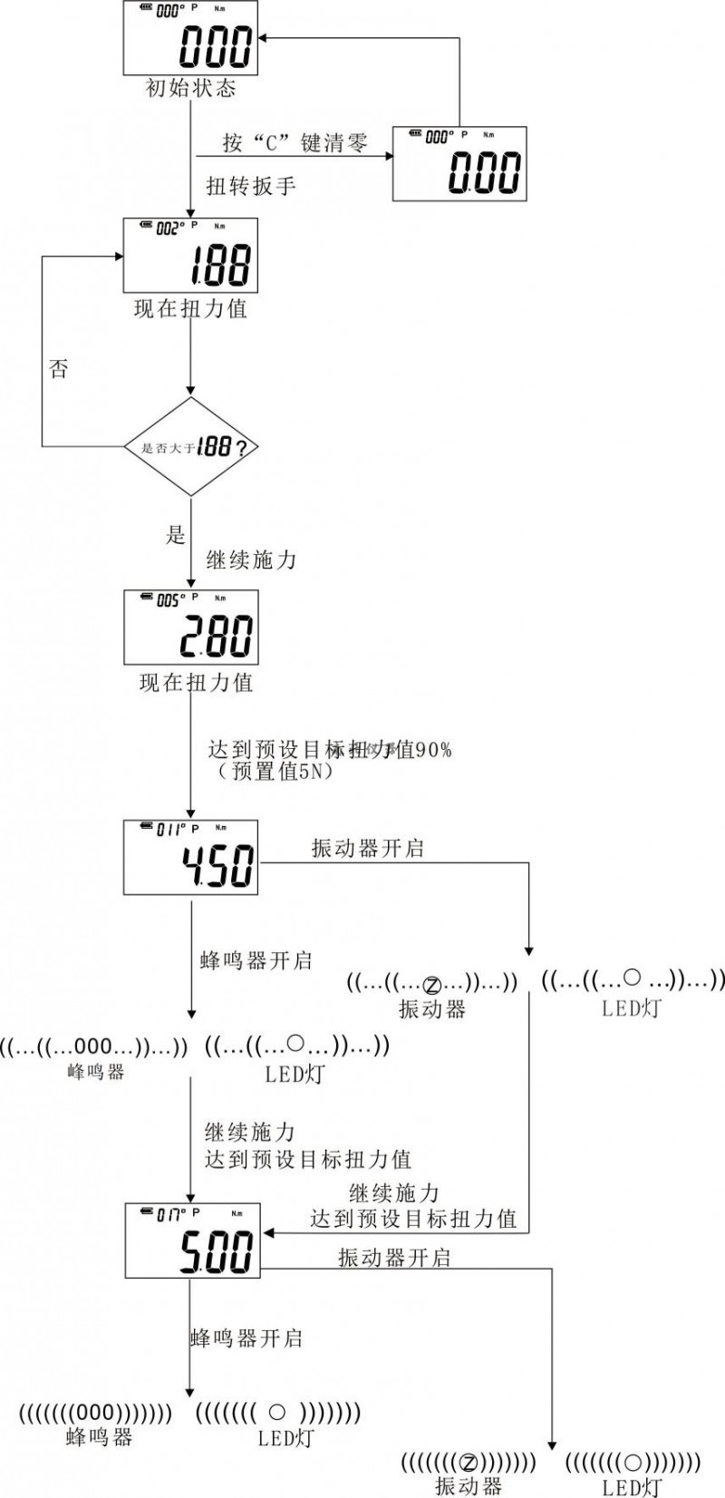 1.2.5 蜂鳴器、LED和振動器提示目標(biāo)值;