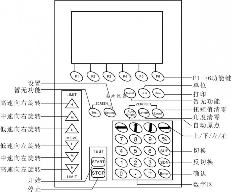 2.2.1 功能鍵:F1~F6這6個(gè)功能鍵對(duì)于儀器界面都是通用的,對(duì)應(yīng)開(kāi)機(jī)后屏幕下方按鍵。