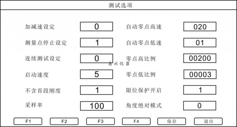 i、零點(diǎn)高比例/零點(diǎn)低比例:這兩個(gè)參數(shù)為自動(dòng)原點(diǎn)的力值判定。零點(diǎn)高比例為“200”,即這個(gè)力值是滿(mǎn)量程*200/10000,即滿(mǎn)量程的2%。零點(diǎn)低比例為“3”,即這個(gè)力值是滿(mǎn)量程*3/10000,即滿(mǎn)量程的0.03%。啟動(dòng)自動(dòng)原點(diǎn)后,當(dāng)力值接近滿(mǎn)量程的2%時(shí),儀器會(huì)在這個(gè)力值停頓幾秒后依據(jù)零點(diǎn)低比例的力值停在自動(dòng)原點(diǎn)的位置。