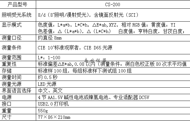 CS-200精密色差儀技術參數: